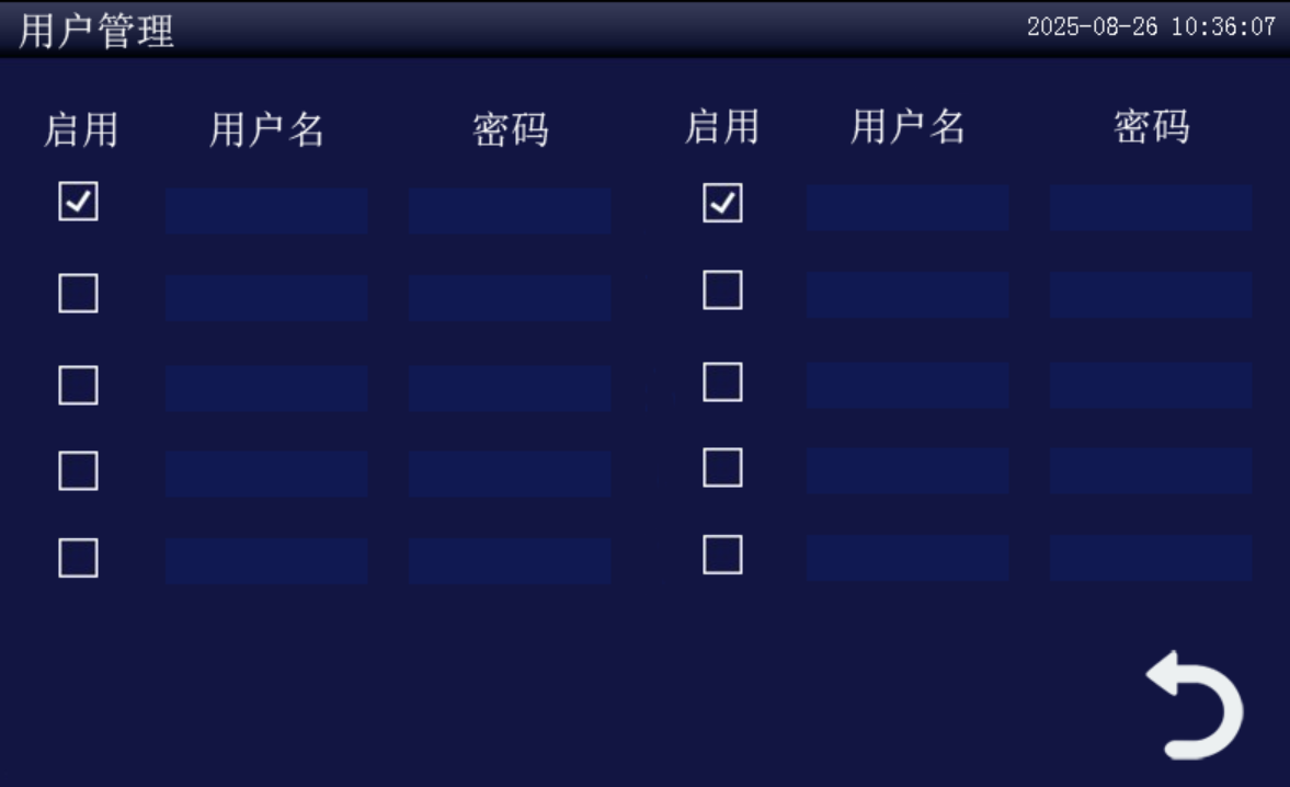 The matching 24V adapter is used to connect the device. After powering on normally, enter the login interface with the initial password 1234
