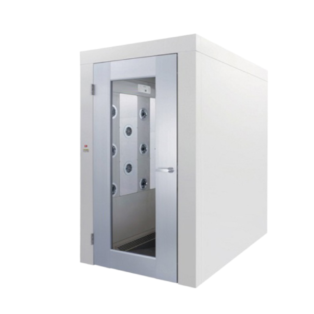 光电感应控制,实行自动吹淋,可有效隔离人员及物品表面尘埃带入洁净室;